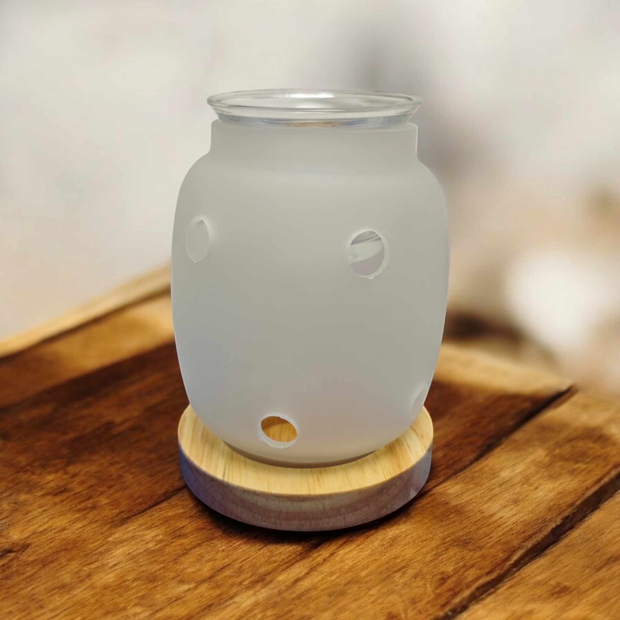 Brûle-parfum Siete en bois et verre givré